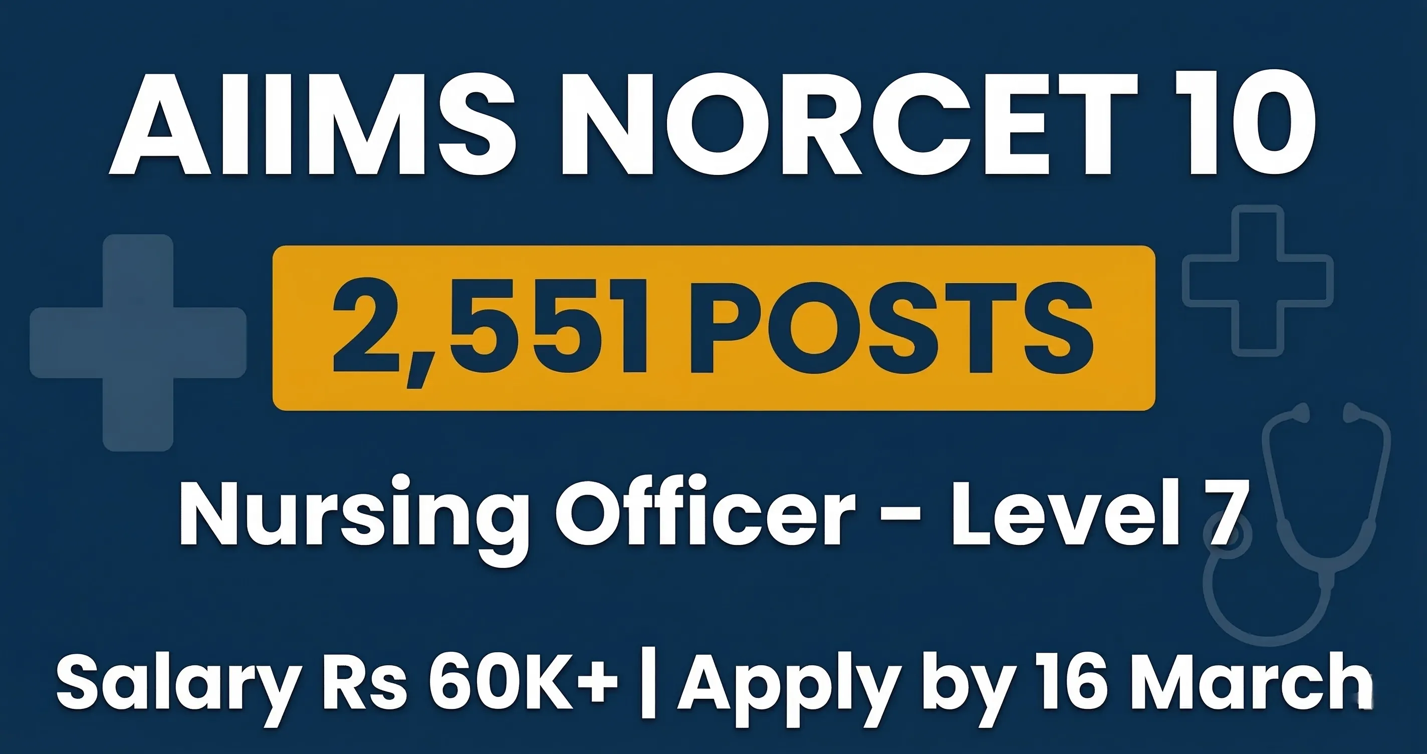 AIIMS NORCET 10 Nursing Officer 2026 - 2,551 Posts, Apply by 16 March