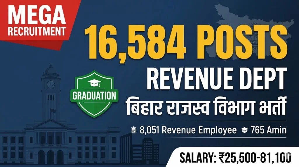 🚨 BREAKING: Bihar Revenue Department mein 16,584 posts ki bharti announce! Notification April 2026 mein expected। Graduation required।