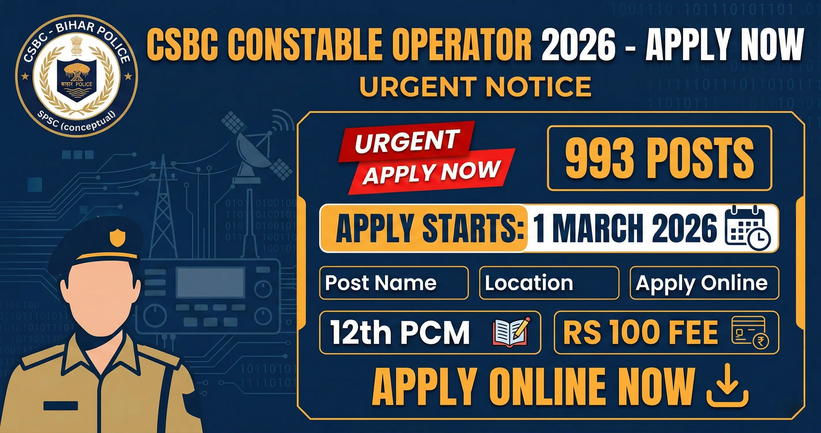 CSBC Constable Operator 2026 - 993 Posts, Bihar Police Radio