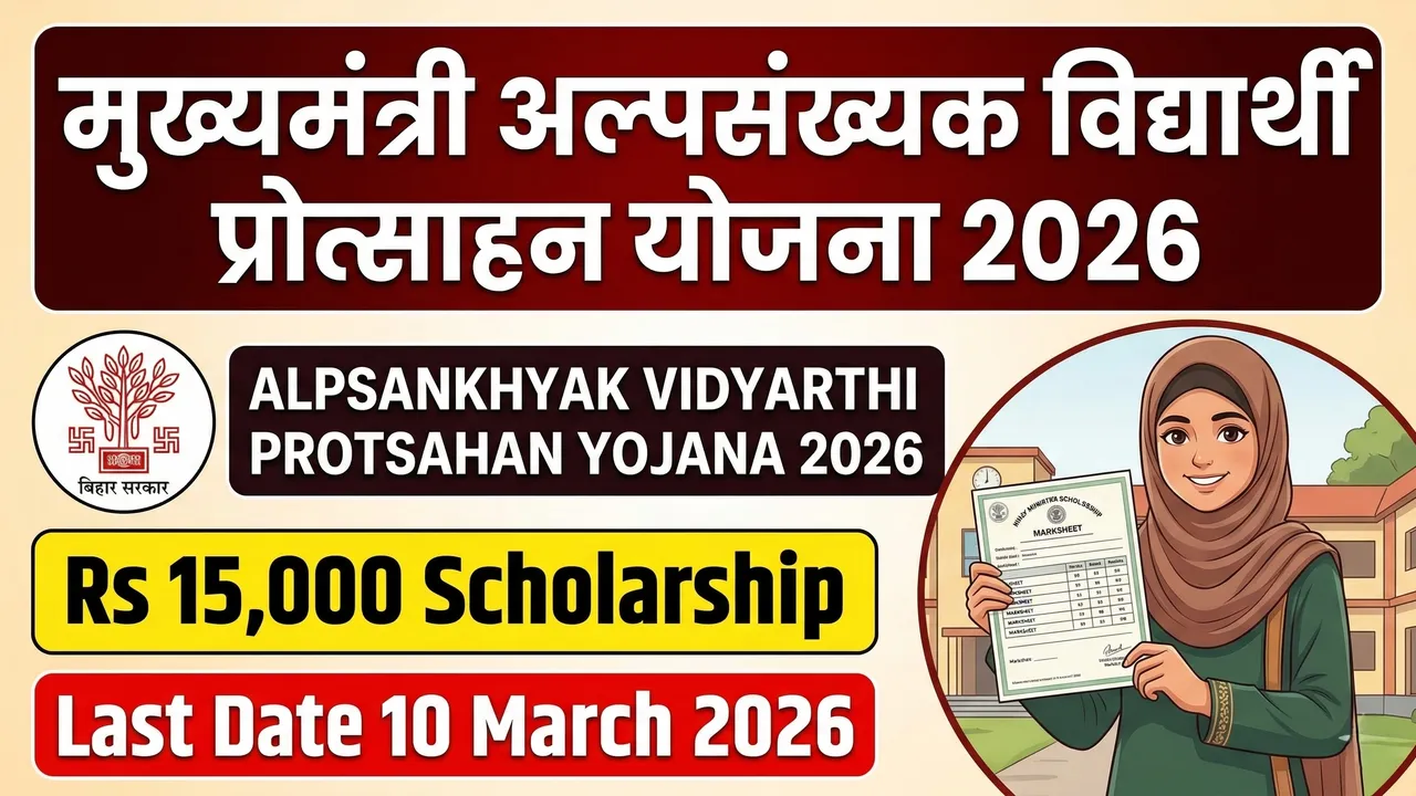SIRF 3 DIN BACHE! Bihar Sarkar ki Mukhyamantri Alpsankhyak Vidyarthi Protsahan Yojana ke under minority community ki ladkiyon ko Rs 15,000 milte hain jo 12th (Intermediate) Bihar Board se First Division mein pass ki hain. Ye Bihar Minority Welfare Department ki scheme hai. Last date 10 March 2026 hai - ABHI apply karo apne District Minority Welfare Office mein jaake. Application OFFLINE hai - koi online portal nahi hai.